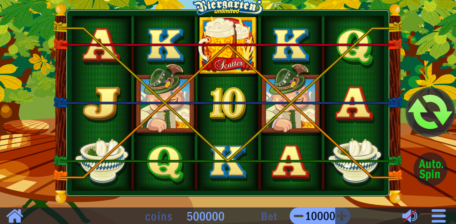 - Конфигурация: 5 барабанов, 3 ряда, 10 фиксированных линий;