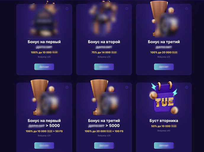 - 1-й депозит: 100% до 10 000 ₽ (+50 FS при депозите от 5000 ₽);