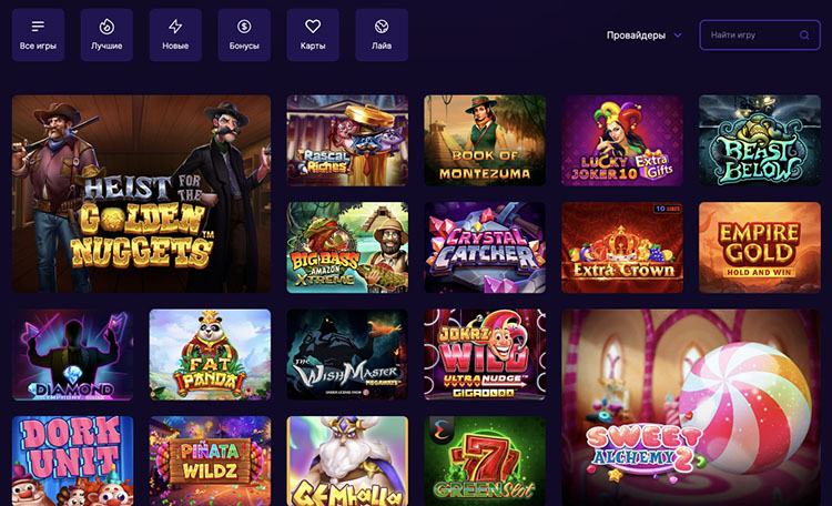 | 🕹️ Провайдеры: Pragmatic Play, Evolution, NetEnt, Play’n GO, BGaming, Yggdrasil, Push Gaming, Nolimit City, Microgaming и 40+ других |