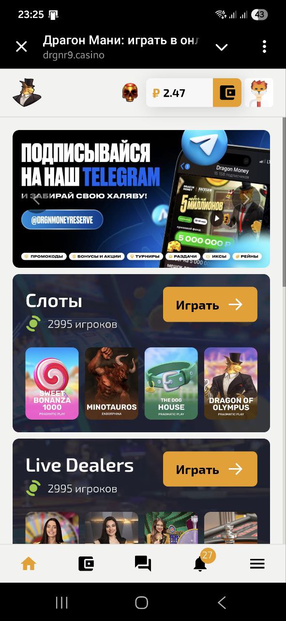 📱 Dragon Money не имеет отдельного приложения, но мобильная версия сайта: