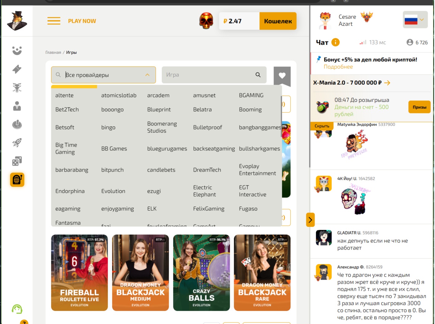 - Мировые лидеры: Pragmatic Play, NetEnt, Yggdrasil, Evolution;