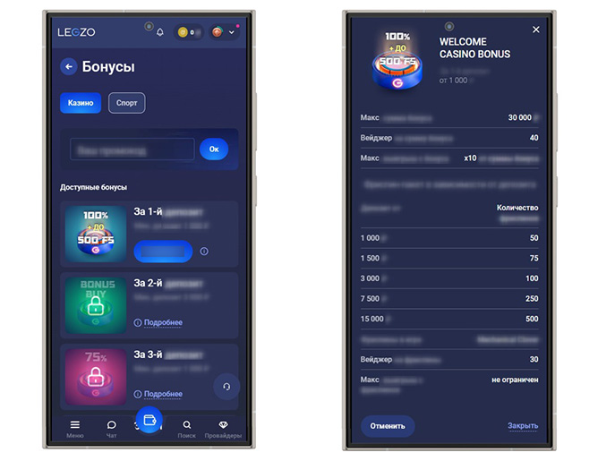 💎 Бонусы Legzo: до 60 000 ₽ + 600 FS и 5% за крипто-депозит