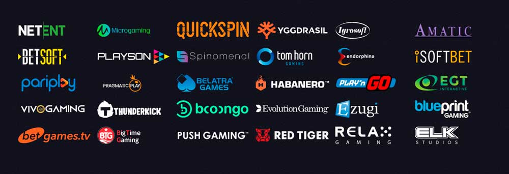 NetEnt, Microgaming, Pragmatic Play, Evolution, Play’n GO, Yggdrasil, Quickspin, ELK Studios, Push Gaming, Spribe (Aviator!), Habanero, BGaming, Igrosoft, Belatra, Onlyplay, PG Soft, Wazdan, Nolimit City, Thunderkick, Red Tiger, Big Time Gaming и ещё 50+ студий.